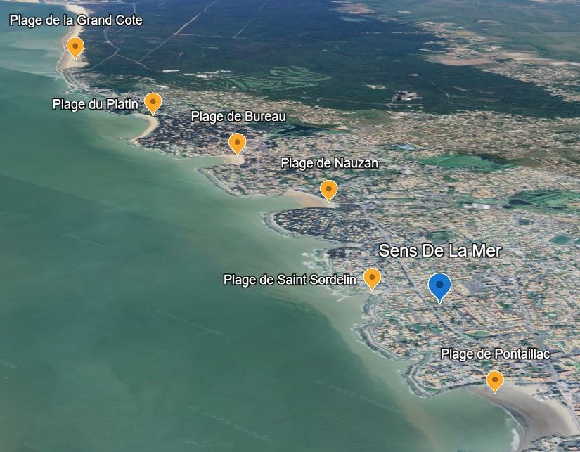 • Le moyen le plus simple d’arriver depuis l’est ou le nord est de suivre les panneaux pour Pontaillac et de rejoindre le Bd Côte de Beauté. Nous sommes à Vaux-sur-Mer, à seulement environ 600 m de Pontaillac.