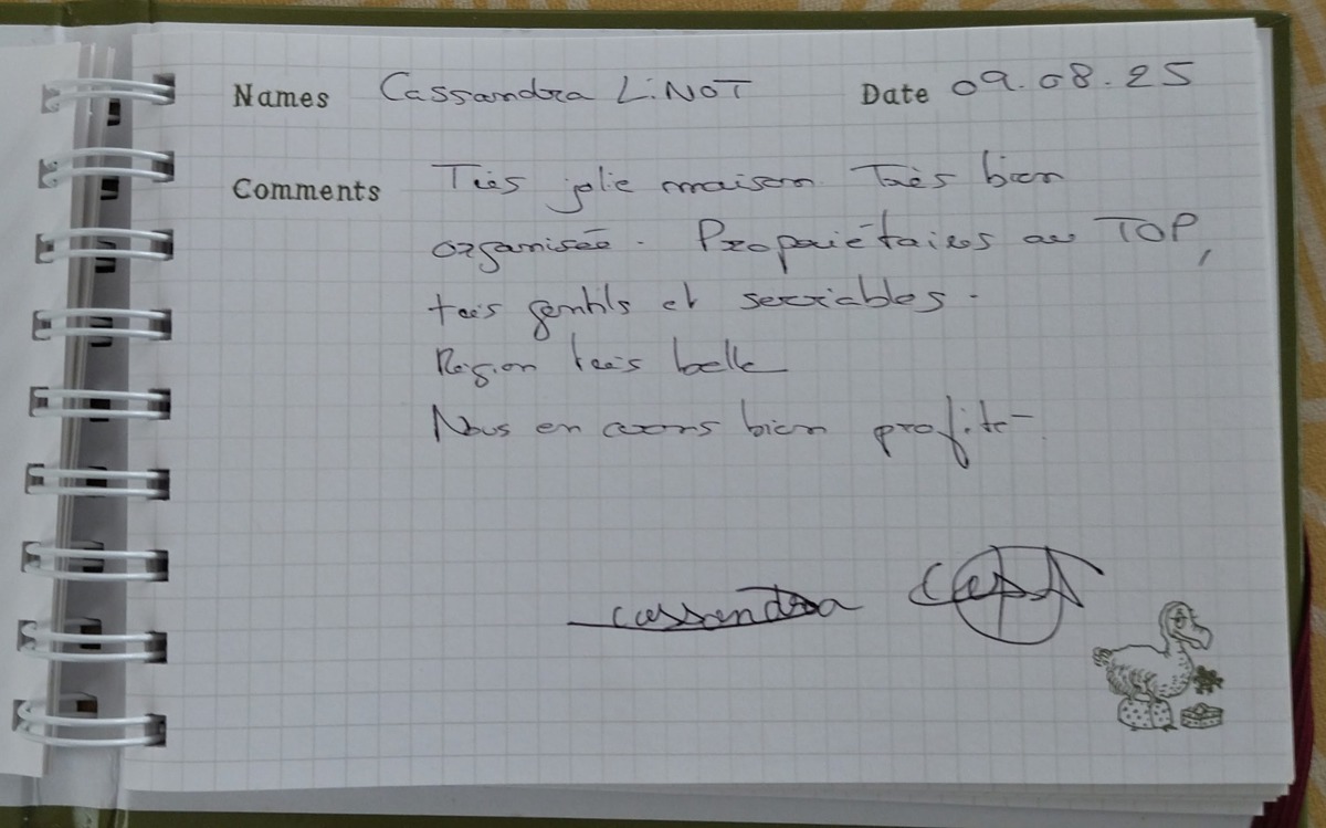 Vous trouverez ci-dessous une sélection de messages laissés dans notre livre d’or.